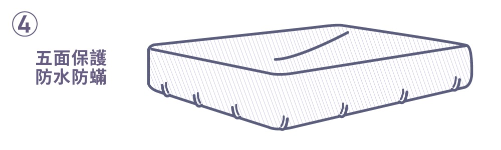 寢之堡特殊設計能防止水份液體滲入床墊,並有效阻隔過敏原接觸皮膚,同時保護床墊、減緩耗損。